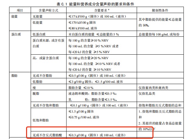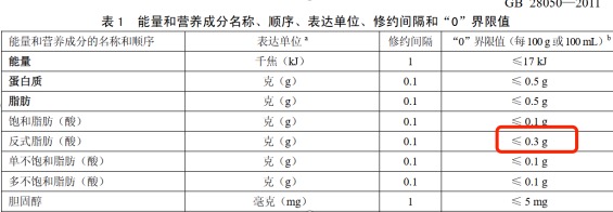 此外,《食品安全國家標準 預包裝食品營養(yǎng)標簽通則》(GB28050-2011)顯示,當一款飲料的反式脂肪酸含量不超過0.3克/100克或0.3克/100毫升時,就可以標稱“無或不含反式脂肪酸”。